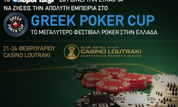 Ένα από τα μεγαλύτερα Festival Poker στην Ελλάδα θα πραγματοποιηθεί από τις 21 μέχρι τις 24 Φεβρουαρίου 2013 στο μαγευτικό Λουτράκι. Πρόκειται για το Greek Poker Cup το οποίο αποτελεί ήδη θεσμό στο χώρο, αφού πραγματοποιείται για τρίτη σεζόν.