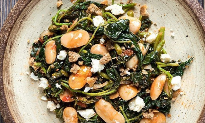 Συνταγή για φασόλια με χόρτα από τον Άκη Πετρετζίκη