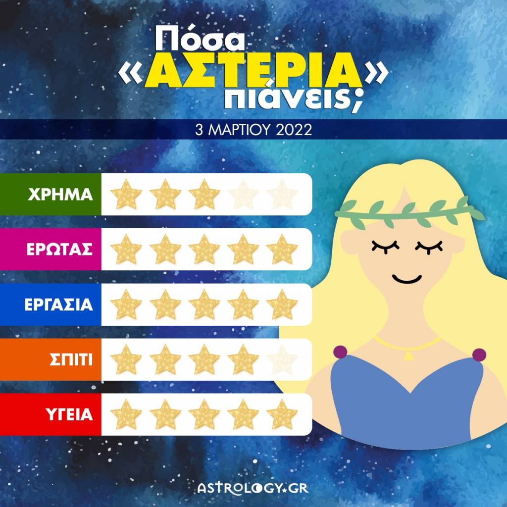 Πόσα αστέρια θα μαζέψει το ζώδιό σου σήμερα, 03/03/2022;