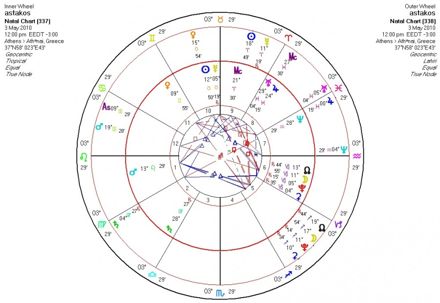 Το μνημόνιο για το έργο του Αστακού υπεγράφη στις 3/5/2010 κάτω από έναν ...ανταριασμένο ουρανό. Το τετράγωνο του Ήλιου με τον Άρη-μια όψη ιδιαίτερα ακατάλληλη για οποιαδήποτε μορφή συνεργασίας-υπέκρυπτε διαφωνίες τόσο σε οικονομικές λεπτομέρειες (ο Ήλιος στον Ταύρο), όσο και σε θέματα ...πρεστίζ (ο Άρης στο Λέοντα). Ίσως αυτό να εννοεί ο κ Παμπούκης, όταν αναφέρεται σε «έλλειψη σοβαρότητας», πάντως μια φούρια και μια βιασύνη στην υπογραφή της συμφωνίας είναι έκδηλη. Παράλληλα με τον Άρη, την ημέρα εκείνη έκανε ιδιαίτερα αισθητή την παρουσία του και ο Ποσειδώνας, ο οποίος ως αστρικός σχημάτιζε ένα «κρυφό» τετράγωνο με τον Ερμή, παραπέμποντας κάθε υπογραφή και συμφωνία στο ...άνεκδήλωτο σύμπαν.