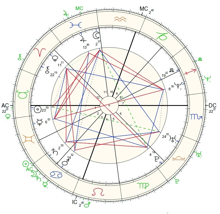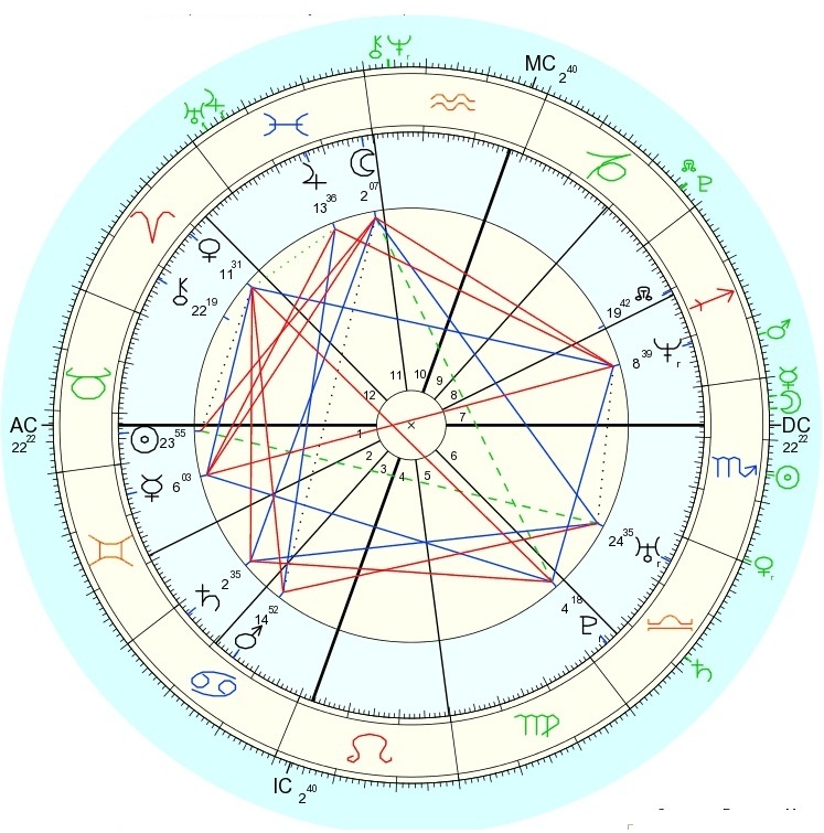 Το γενέθλιο τετράγωνο Δία/Ποσειδώνα βέβαια κρύβει κινδύνους απογοήτευσης στο τέλος, ειδικά μάλιστα που με το τετράγωνο Δία/Ερμή του δείχνει να έχει και γενικά υπερβολική αισιοδοξία σαν άνθρωπος.