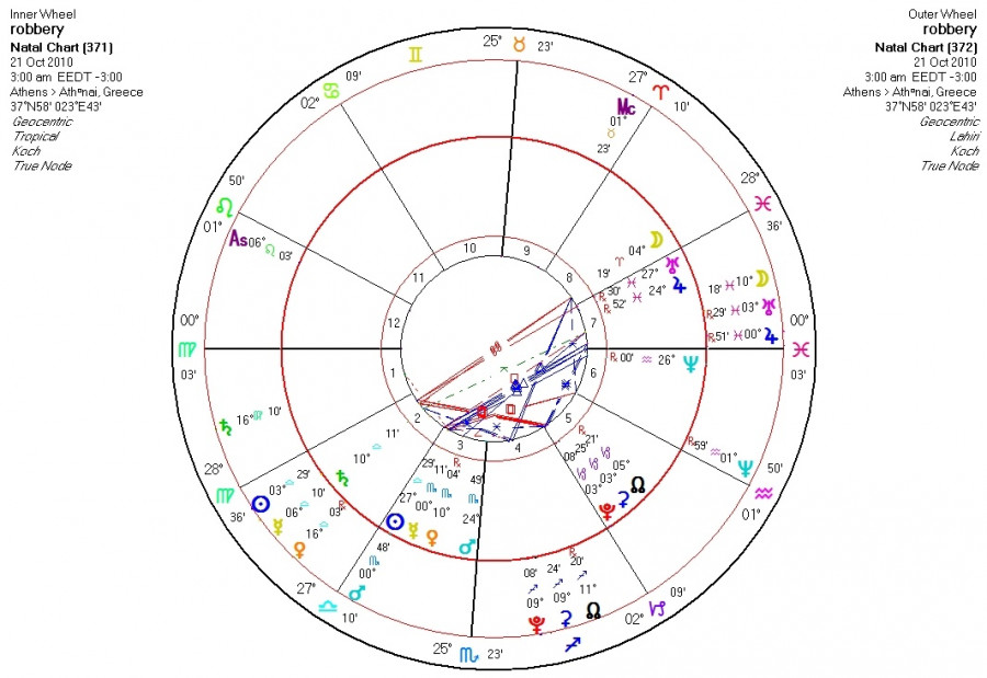 Στο ωροσκόπιο της στιγμής είναι εμφανής η επιρροή του Άρη που βρίσκεται πάνω στην ακμή του 4ου οίκου, σε ένα ζώδιο μάλιστα (Σκορπιός) που συνδέεται άμεσα με οικονομικά θέματα. Η σύνοδος του-ως αστρικός- με τον τροπικό Ερμή συνέβαλε τα μέγιστα στην εκδήλωση της βίας όπως είχα επισημάνει και στον «Οδηγό δραστηριοτήτων» της τρέχουσας εβδομάδας: